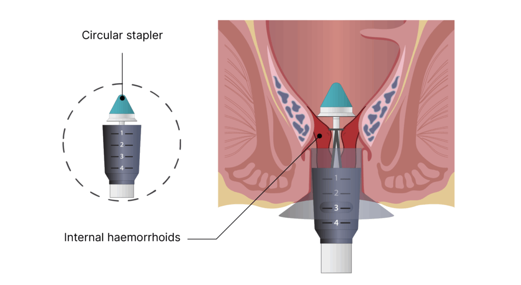 The surgery aims to remove or shrink problematic haemorrhoid tissue. The exact approach used will depend on the severity of the patient’s symptoms, location of the haemorrhoids or risk of complications.